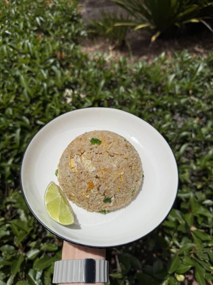 Thai-style fried rice with chilli, basil, onion, garlic and tomato