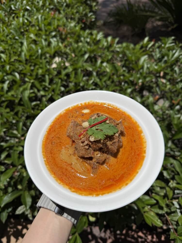 Slow cooked beef, massaman curry paste, coconut milk, potato topped with roasted peanut