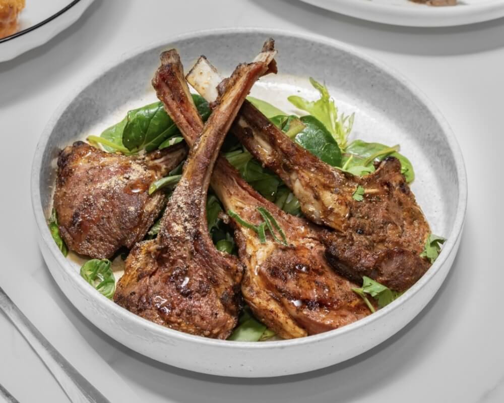 Succulent lamb cutlets with homemade marinade served on a bedding of salad
