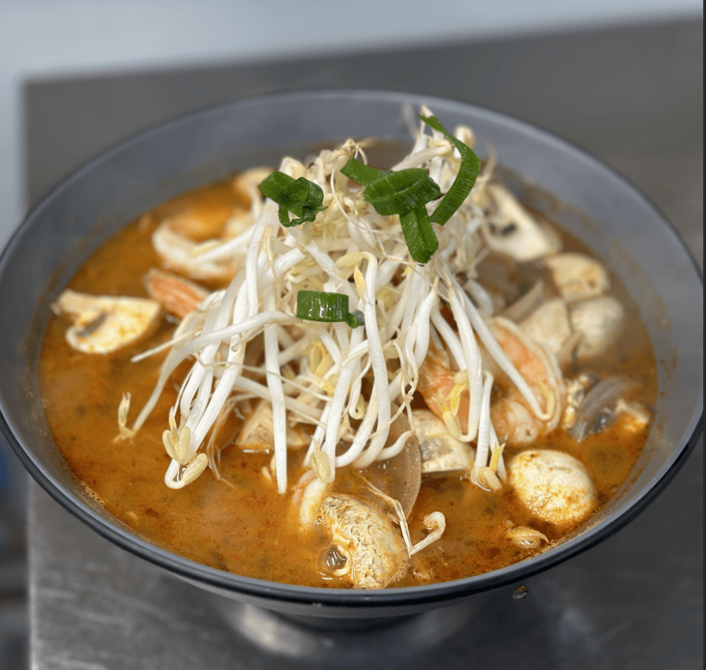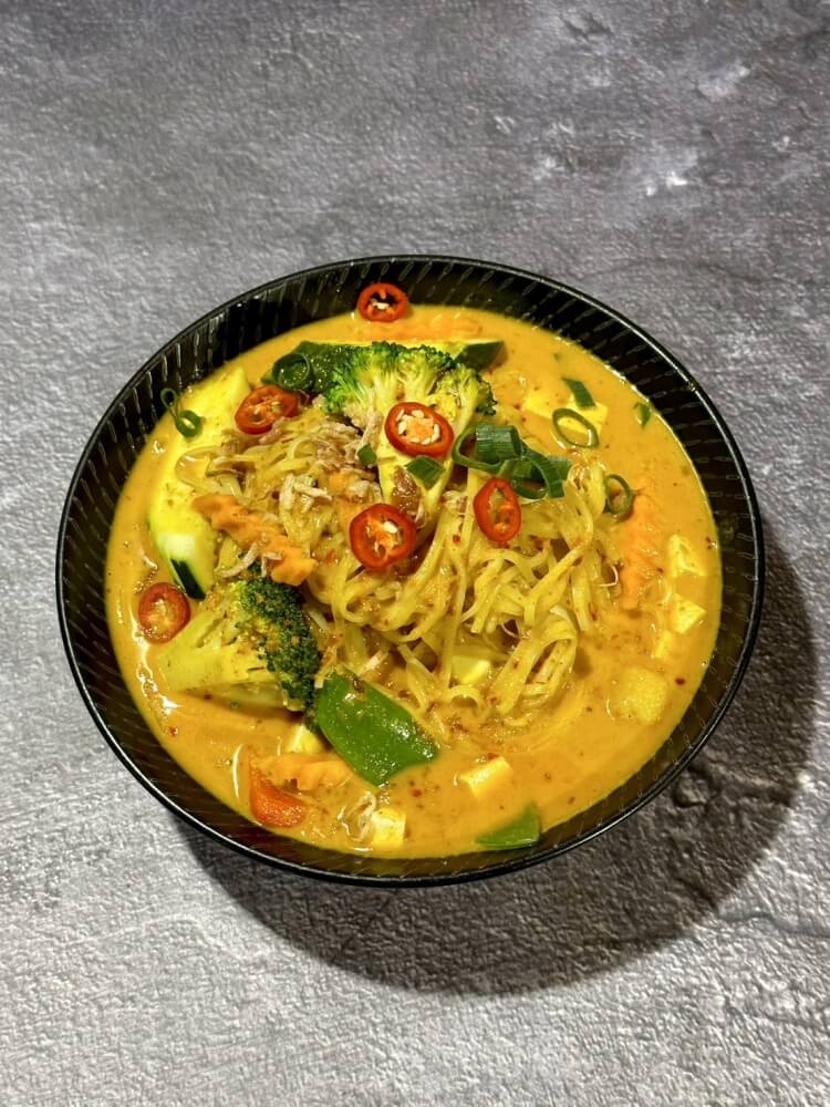 Thin rice noodle, laksa paste, bean sprout and bok choy