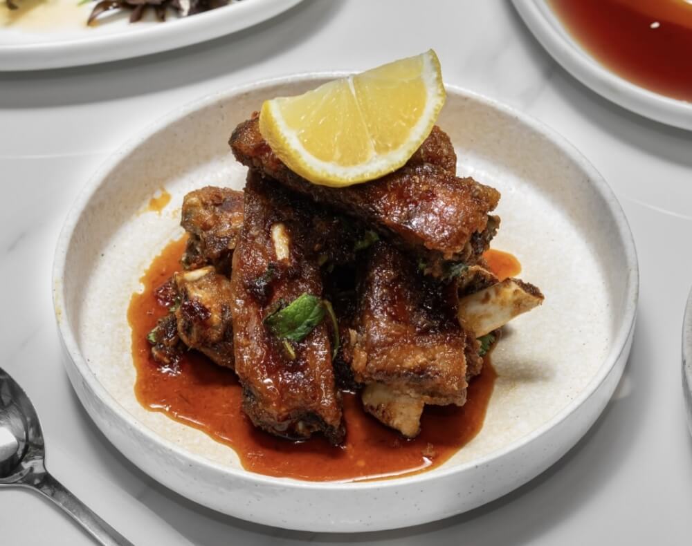 Pork ribs with lemongrass dressing and lemon