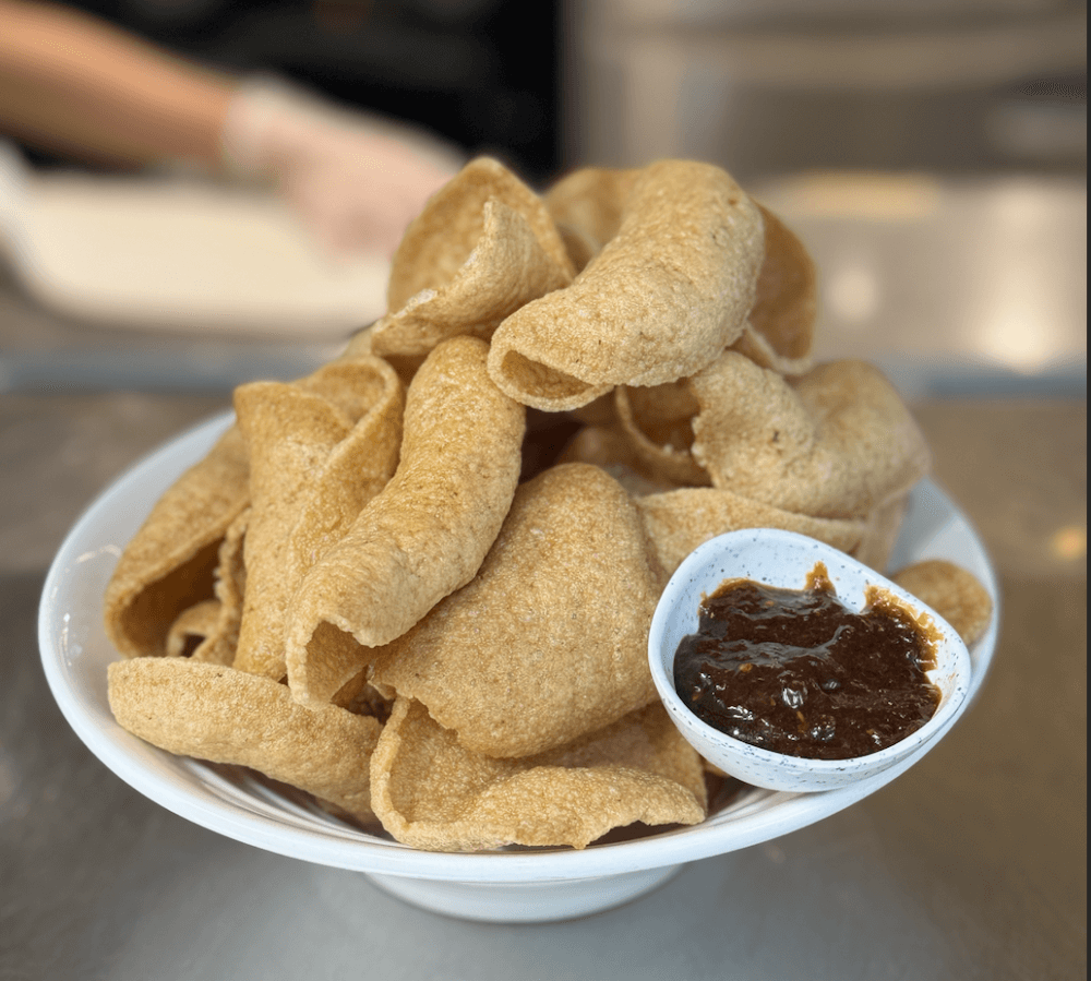 Crispy prawn crackers served with nam prik pao sauce