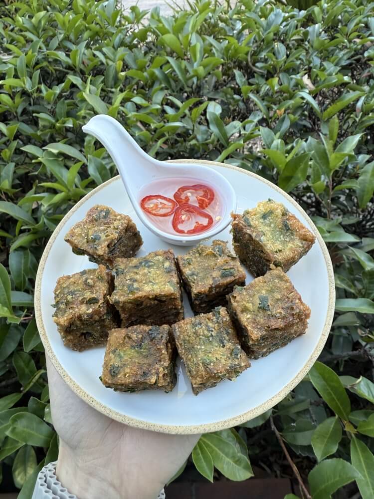 Deep-fried garlic chives served with vinegar chilli sauce
