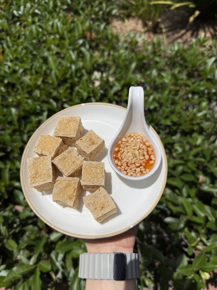 Deep fried tofu served with crushed peanut in sweet chilli sauce