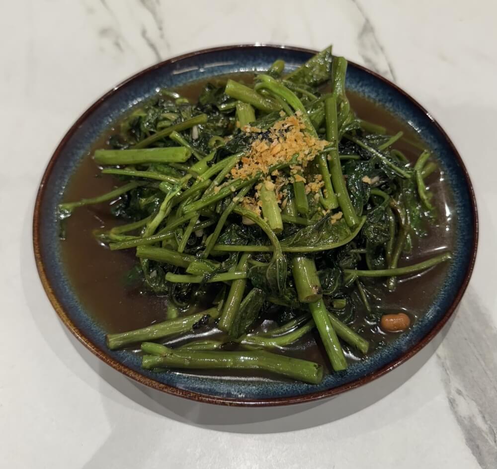 Stir-fried morning glory with fermented yellow bean, garlic and chilli
