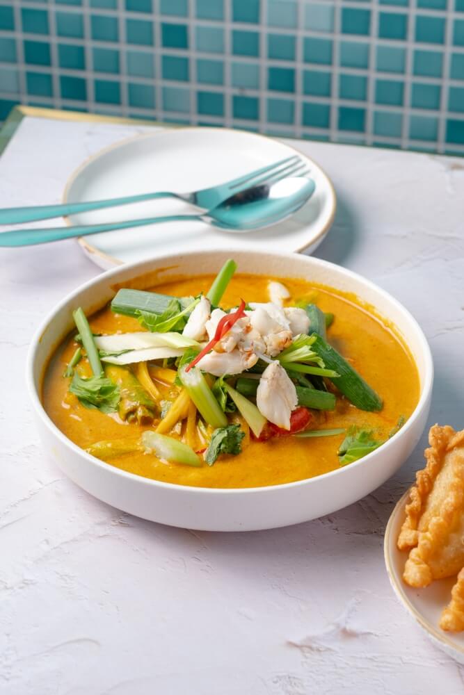 Thai creamy Northern curry with egg noodle and crispy egg noodle