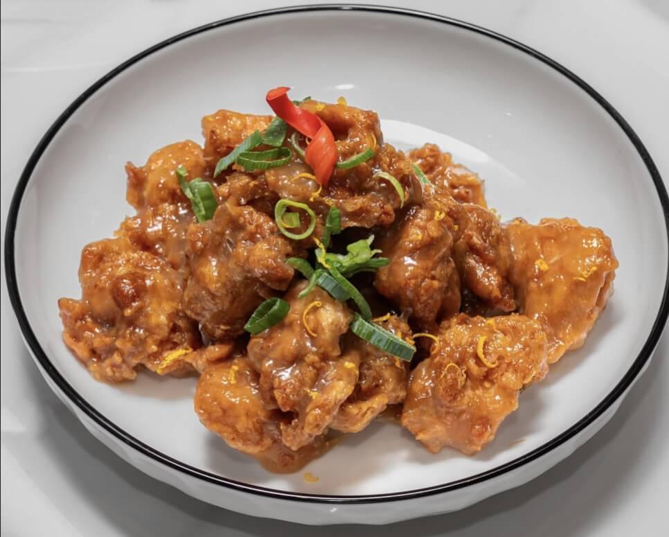 Fried chicken with our special orange sauce