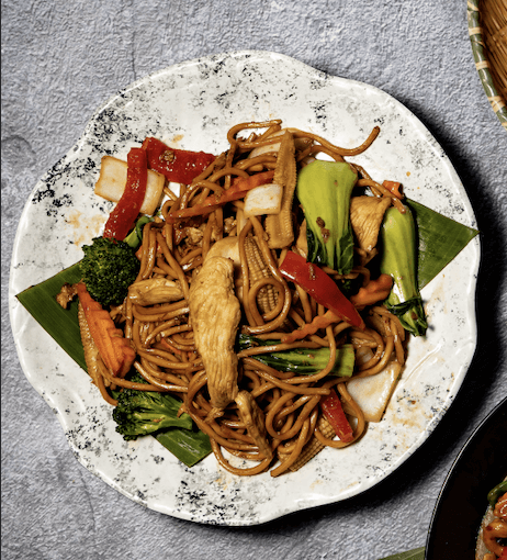 Stir-fried hokkien noodle with egg, mixed vegetables and oyster sauce