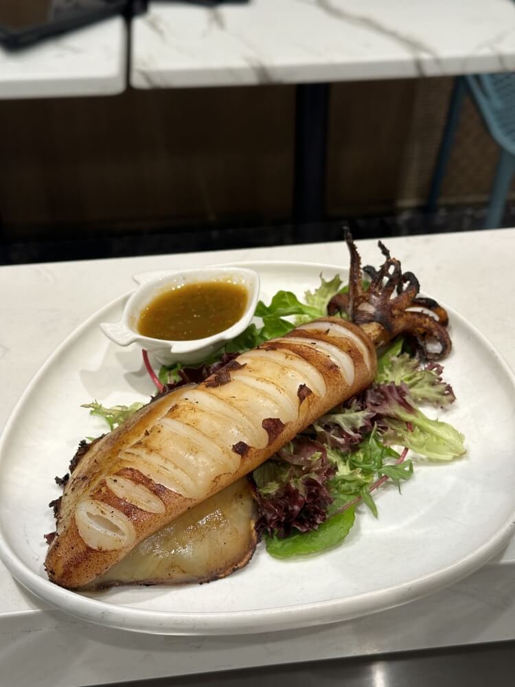 Tender grilled squid served with Thai seafood dressing
