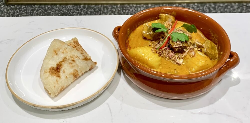 Slowly braised lamb shoulder in coconut milk, turmeric, lemongrass, curry powder, spices, shrimp paste and potato served with roti bread